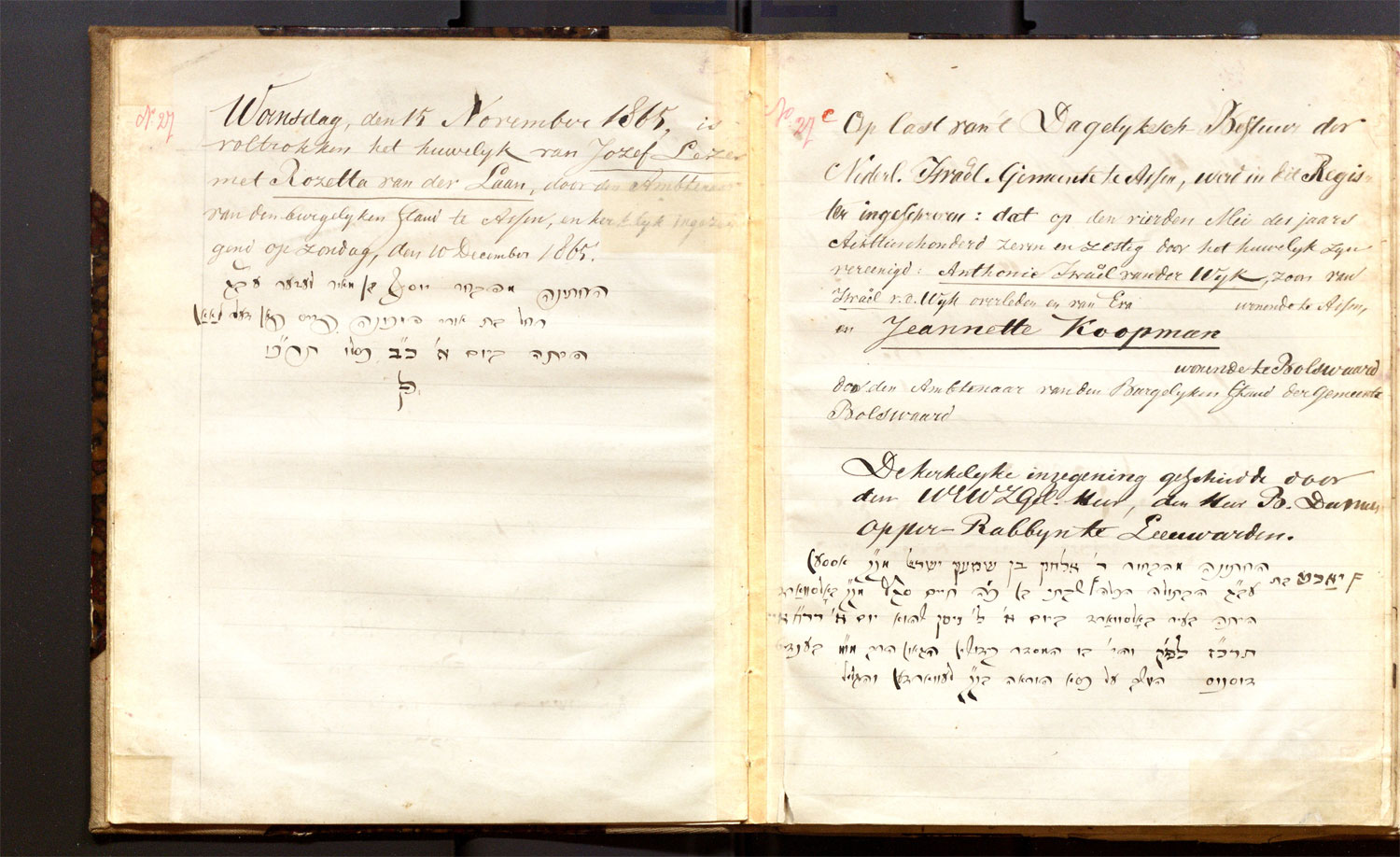 | 15.11.1865 | Jozef Lezer | Rozetta van der Laan | ja | |
