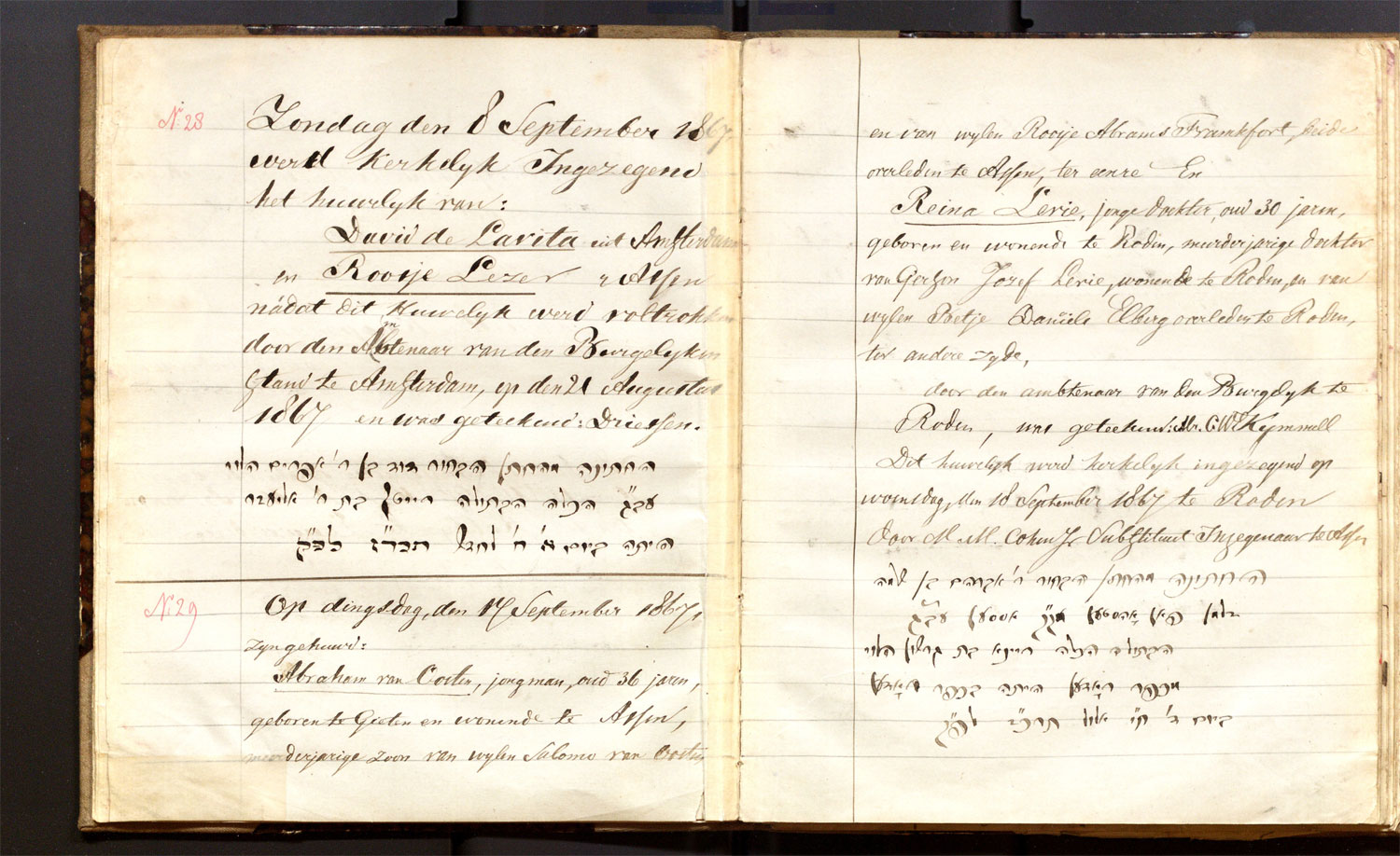 | 21.08.1867 | David de Lavita | Roosje Lezer | Amsterdam | ja |