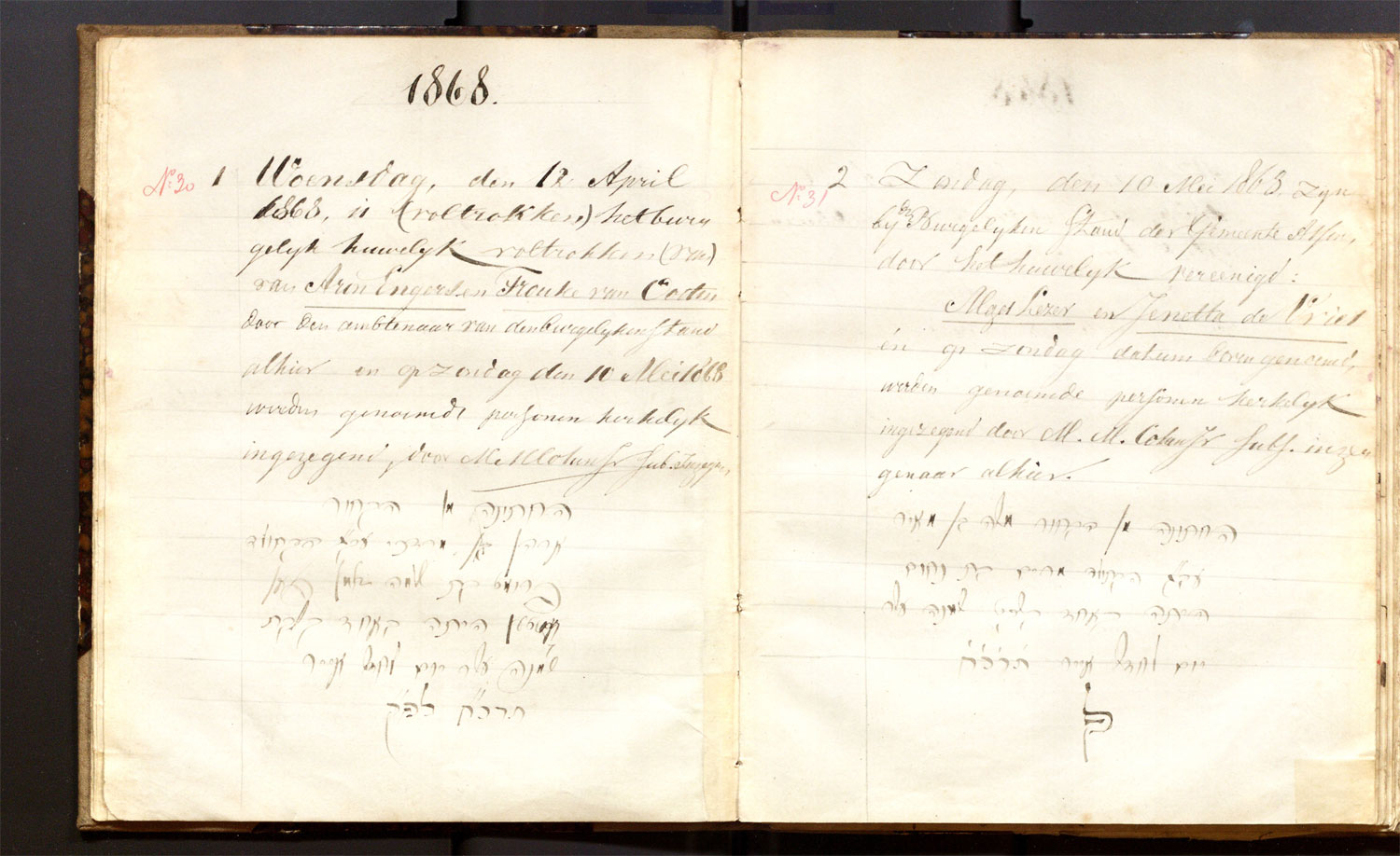 | 10.05.1868 | Mozes Lezer | Jenetta de Vries | ja | |