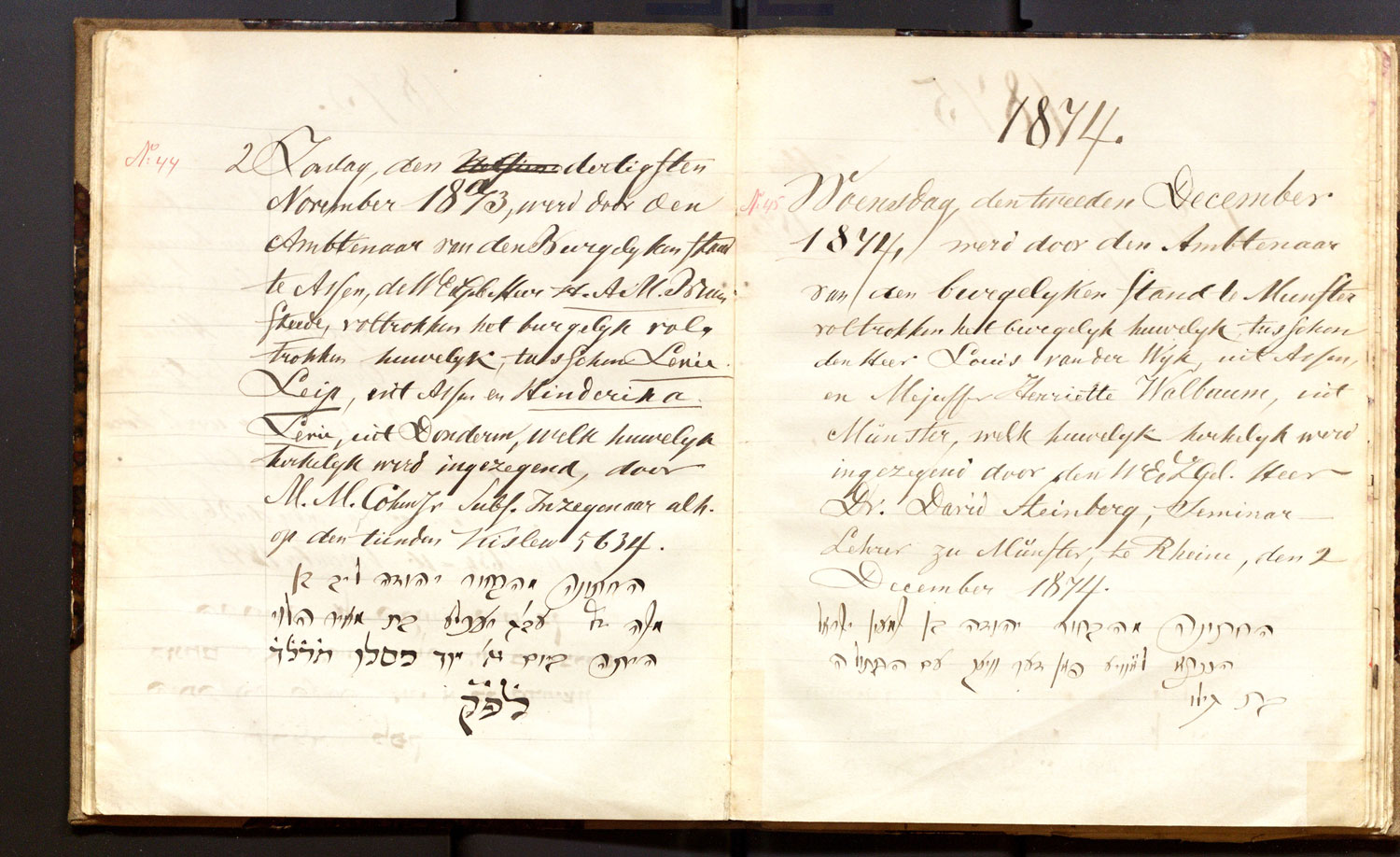 | 02.12.1874 | Louis van der Wijk | Henriette Walbaum | Münster | ja |