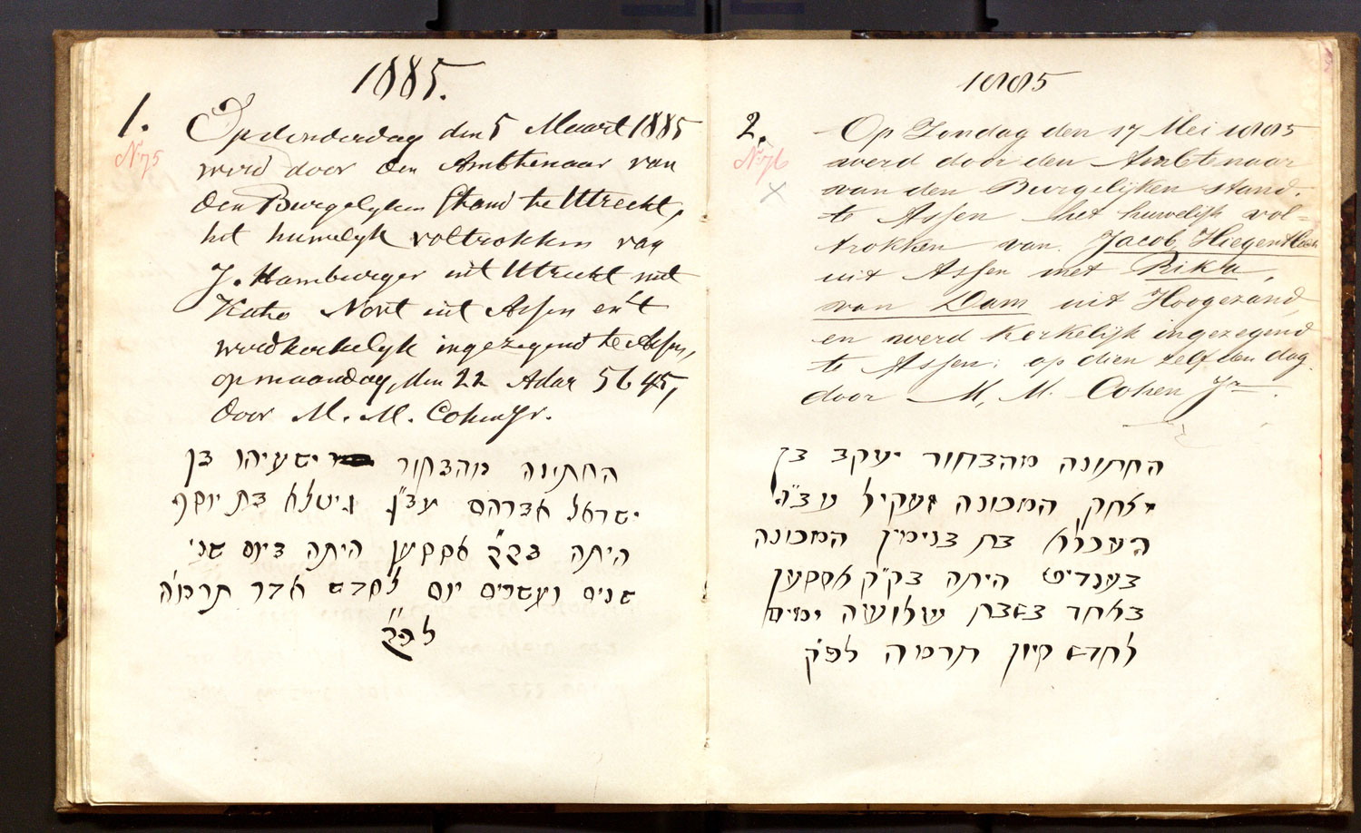 | 05.03.1885 | Jezaja Hamburger | Cato Nort | Utrecht | ja |