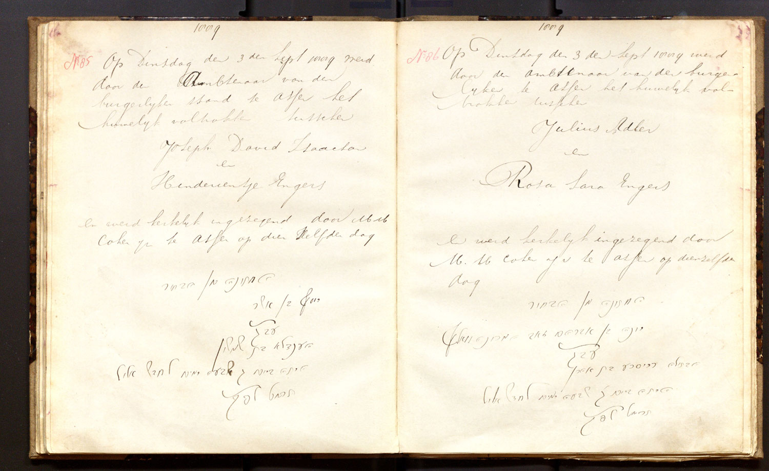 | 03.09.1889 | Joseph D. Isaacson | Hinderientje Engers | ja | |