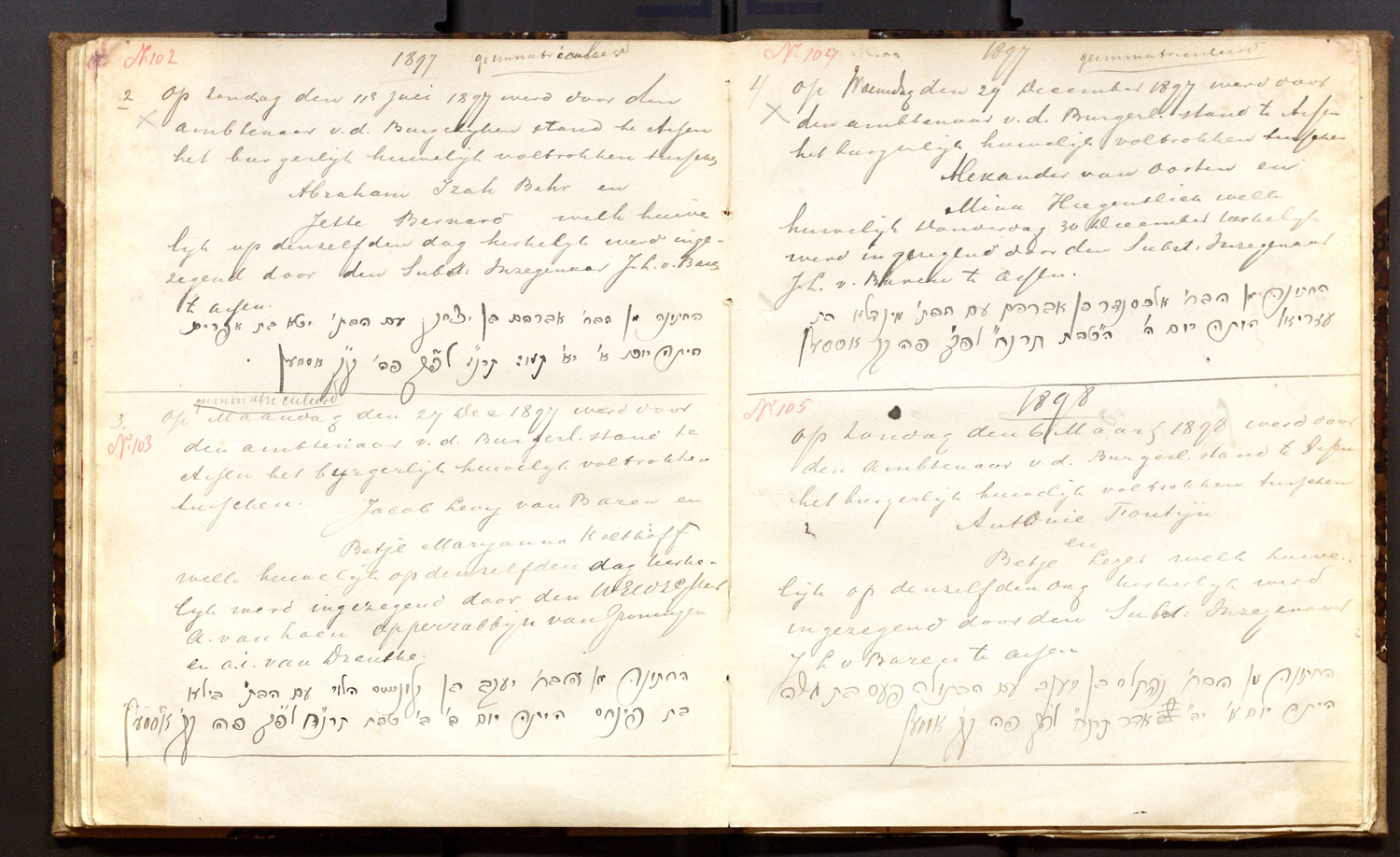 | 24.12.1911 | Benjamin van Gelder | Minkje Cohen | ja | |